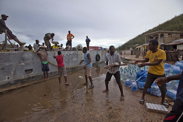 As the government rebuilt the roads, a Food for the Poor barge came into Pestel with a truck and forklift. Trucks rolled into Jeremie with food, hygiene kits, blankets, "anything they might need."