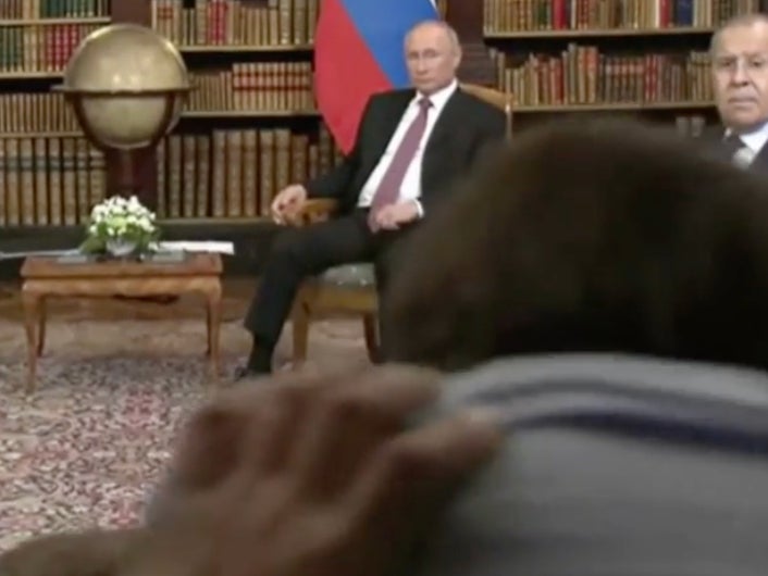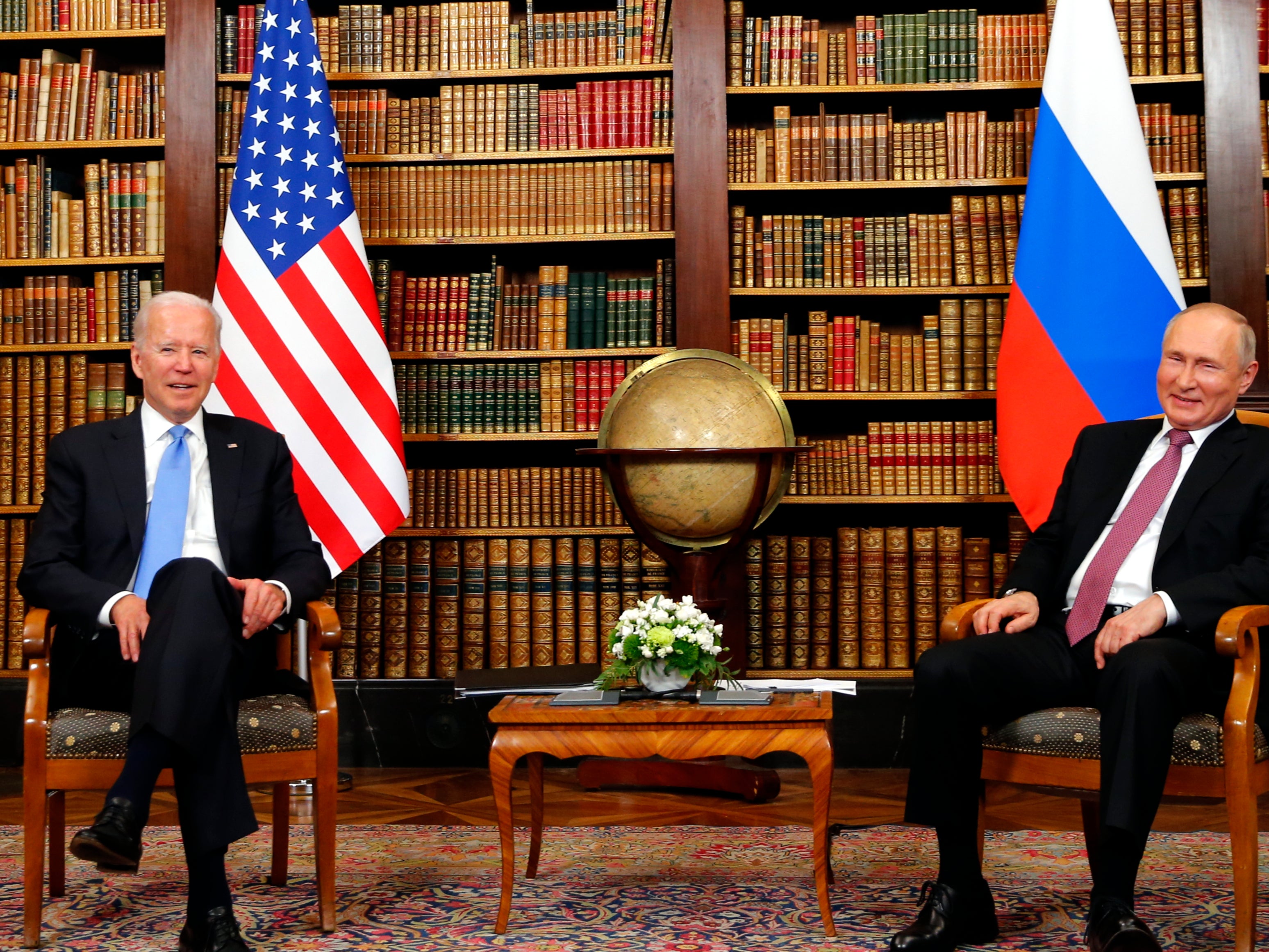Once inside Villa La Grange for the summit, Biden and Putin sat for another photo op. Biden was sitting upright with his legs crossed while Putin was slouching.