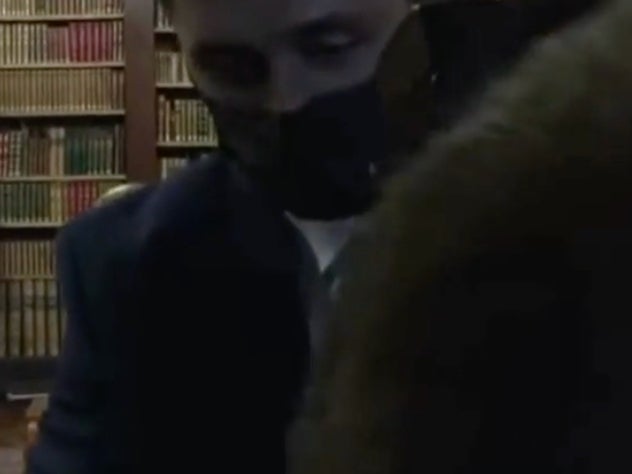 The photographer was protesting inaudibly, and when the video cut out, he was still taking photos while the aid tried to get the press out of the room.