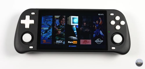 Yep, that definitely seems to be an extension to Pornhub wedged between MSX and PC Engine. It’s unclear how such a gross oversight occurred over at (shudder) PowKiddy, but boy oh boy is it a bad one. Normally, we’d completely laugh this one off, but it is undeniably a bit disconcerting to see that kind of mistake manifested within a gaming device specifically marketed towards children. As YouTube review channel Taki Udon points out, the product even includes a “Children’s Gift” tag within its listing page on Ali Express.