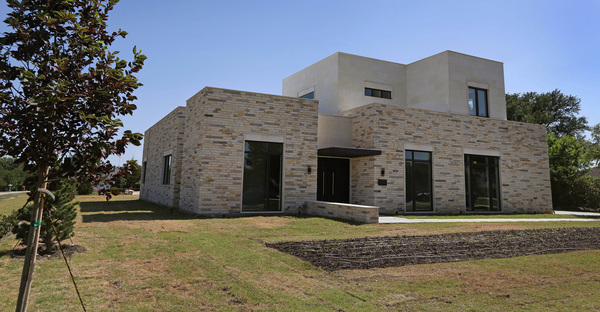 Built out of limestone blocks in a "Texas modern" style, the four-bedroom, 3.5-bath house has about 3,600 square feet.
