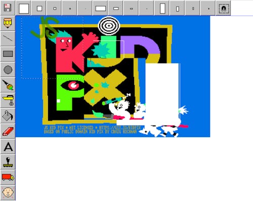The web port is just as fully-featured as the original 1.0 version released in ’89. It includes all the drawing tools kids will remember from the original software — and all the amazing, ridiculous sound effects that came with the original, too. The undo button’s Oh no!, in particular, unlocked some very strong memories for me.