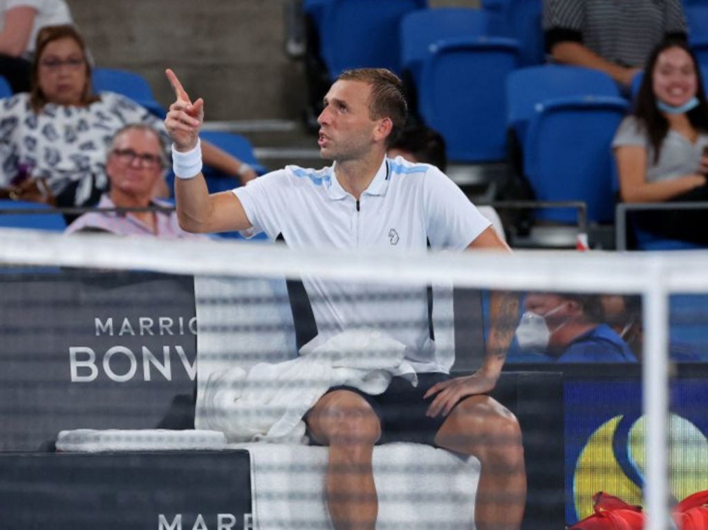 Dan Evans launched into a furious tirade after Aslan Karatsev left the court for a lengthy bathroom break during the deciding set of their semi-final at the Sydney Tennis Classic.