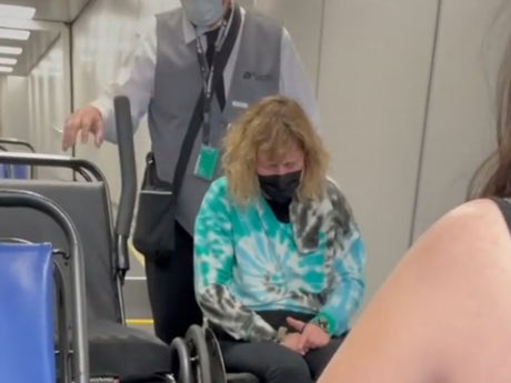 A disabled woman “sobbing” because an airline allegedly broke her wheelchair has gone viral after her friend posted a video of the incident on social media.