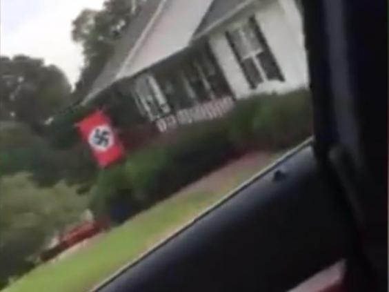 Page Braswell said she was driving through Mount Holly, North Carolina, when she passed a house flying a red-and-white Nazi flag from the front porch.