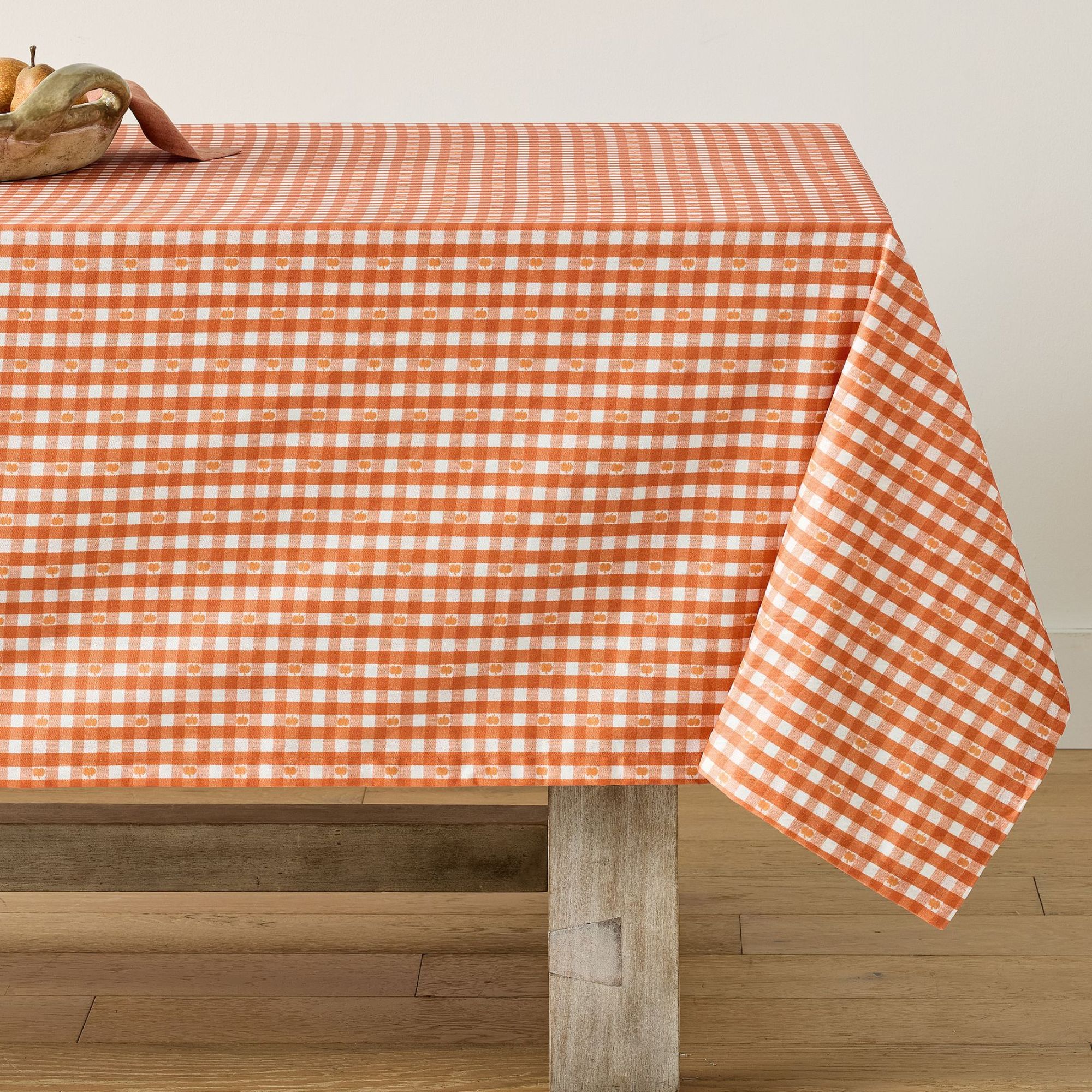 Available in either cream or black, this table runner is whimsical without descending into kitsch. I would style it with gingham napkins and a cluster of mini pumpkins as a centerpiece.