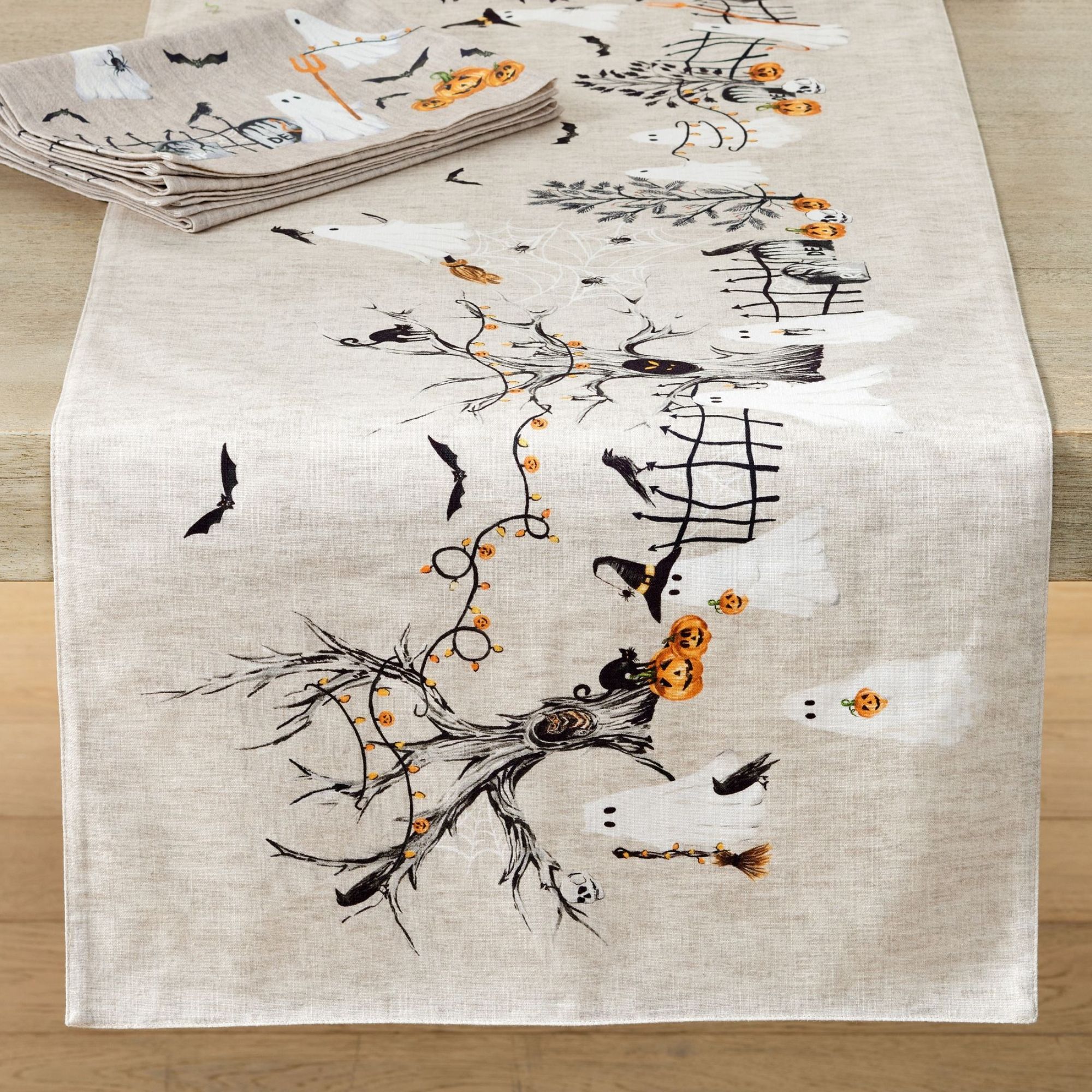 Subtle and sophisticated, these napkins provide a touch of Halloween flair that's fitting for a minimalist tablescape. I'd pair them with black taper candlesticks and gold flatware.