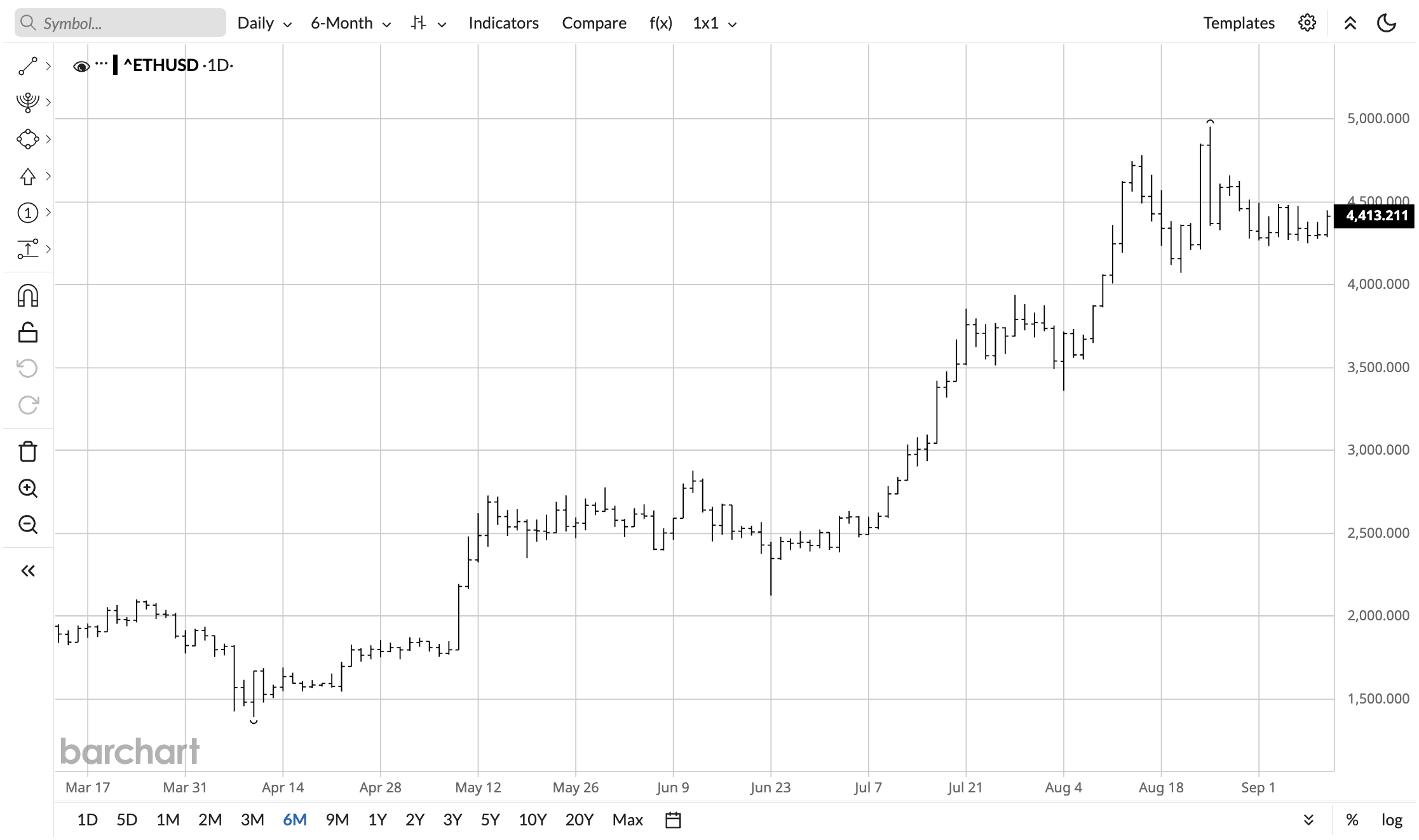The ETH to BTC ratio is a good indicator of how high ETH can go. From mid-2021 to mid-2023, 1 ETH could buy roughly 0.07 BTC. Today, 1 ETH gets you 0.038 BTC. Ethereum would have to nearly double to reach those levels.