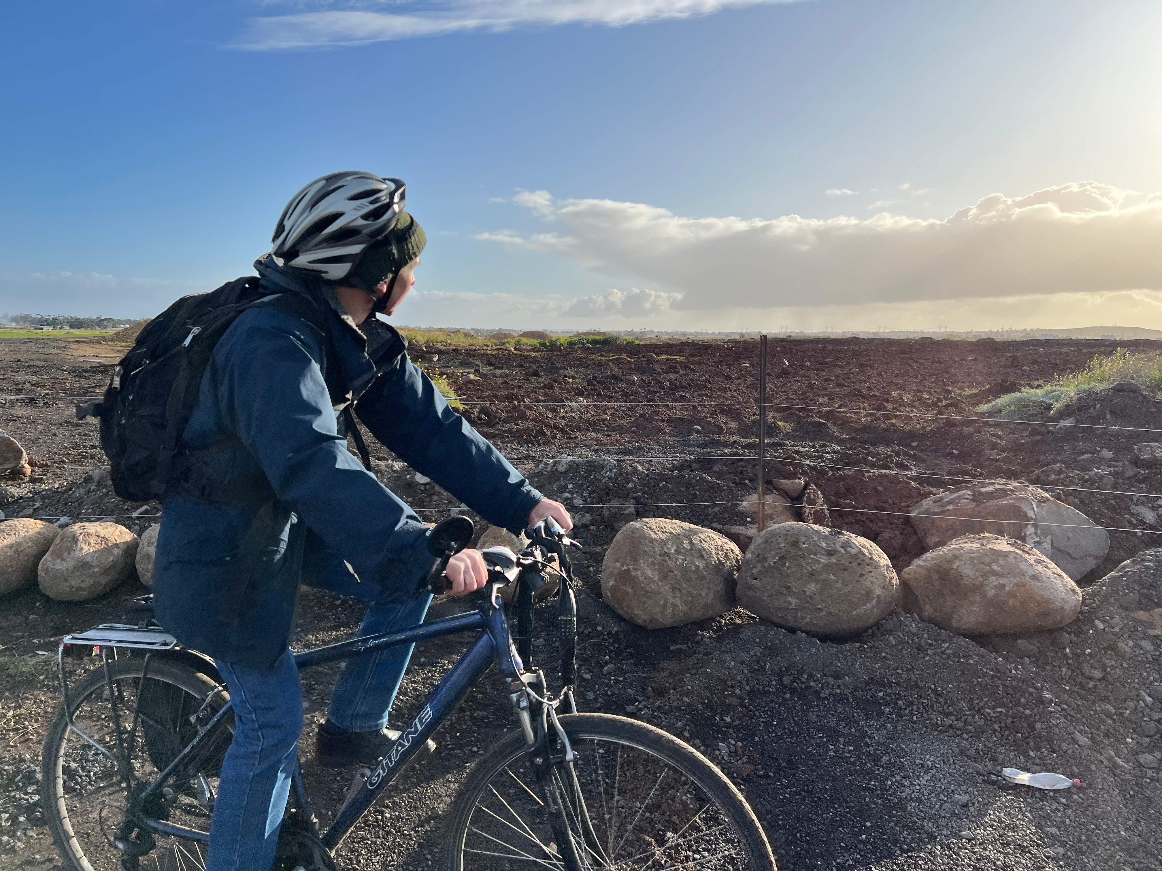 On dirt tracks and narrow country roads, the conservation volunteer has taken to his trusty pushbike to keep an eye on some of Victoria's last remaining native grasslands.
