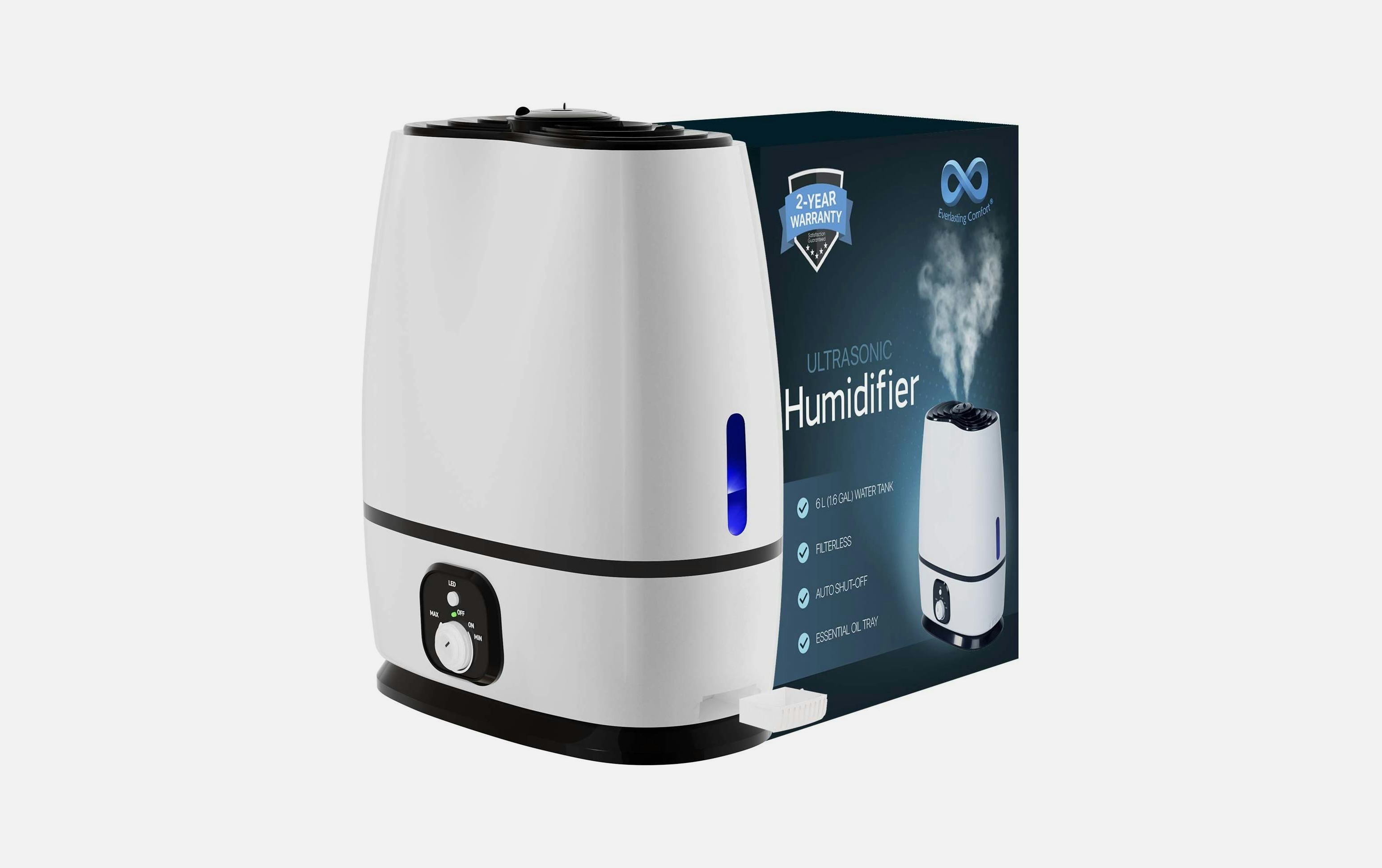 The Everlasting Comfort 6L Humidifier (or ECH, as I’m now calling it) hits all of the marks with the precision of a Broadway lead. First up, the only maintenance required is filling it with water and the screw-on cap for the tank has a rubber seal so there’s no leakage. It’ll shut off when it runs out and alert you via a red LED above its on/off/enthusiasm dial. Second, because it takes 1.6 gallons (or 6L, as per the name), on a low setting it’ll last two days between refills.