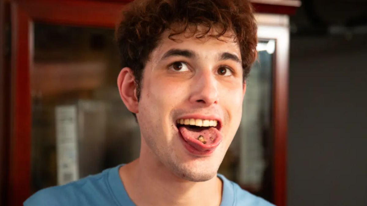 “Mealworms [are] a contender for, like, one of my most favorite insects.” Carlos goes on to describe the taste: “And my favorite thing about them is the flavor. It’s a lot like buttered popcorn.” He offers other comparisons, claiming cockroaches actually taste like custard and crickets like a veggie delight. He describes the texture as ticklish in his mouth.