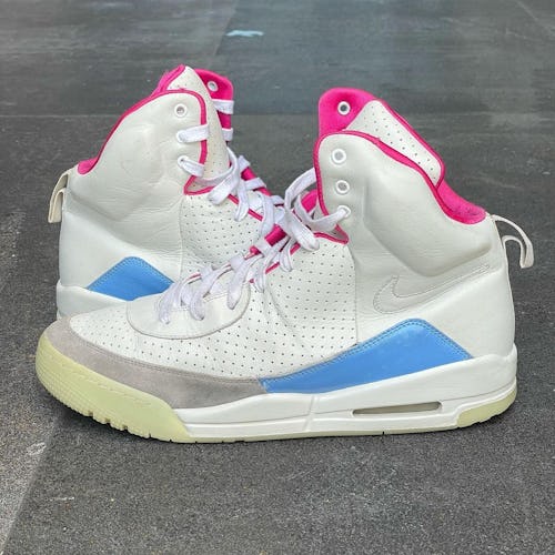 This week another one-of-a-kind Air Yeezy sample has surfaced, and it comes in a color scheme never before seen. A collector who goes by MCsneakers on Instagram posted images of a prototype used for wear testing prior to the Air Yeezy going on sale in 2009. As noteworthy as the off-white, pink, and blue color scheme is the lack of strap that would be seen on the end product.