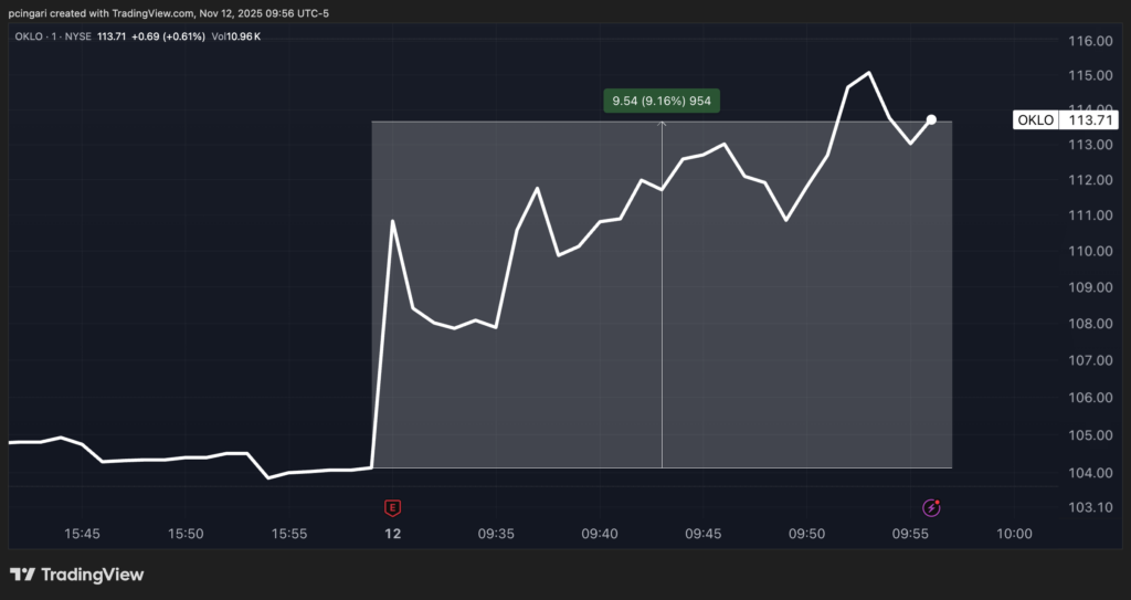 Despite reporting a wider-than-expected loss for the quarter, shares of Oklo Inc. (NYSE:OKLO) jumped more than 8% during Wednesday morning trading as investors shifted focus to accelerating regulatory approvals, advanced fuel milestones, and U.S. government programs positioning the company at the center of a modern nuclear energy buildout.