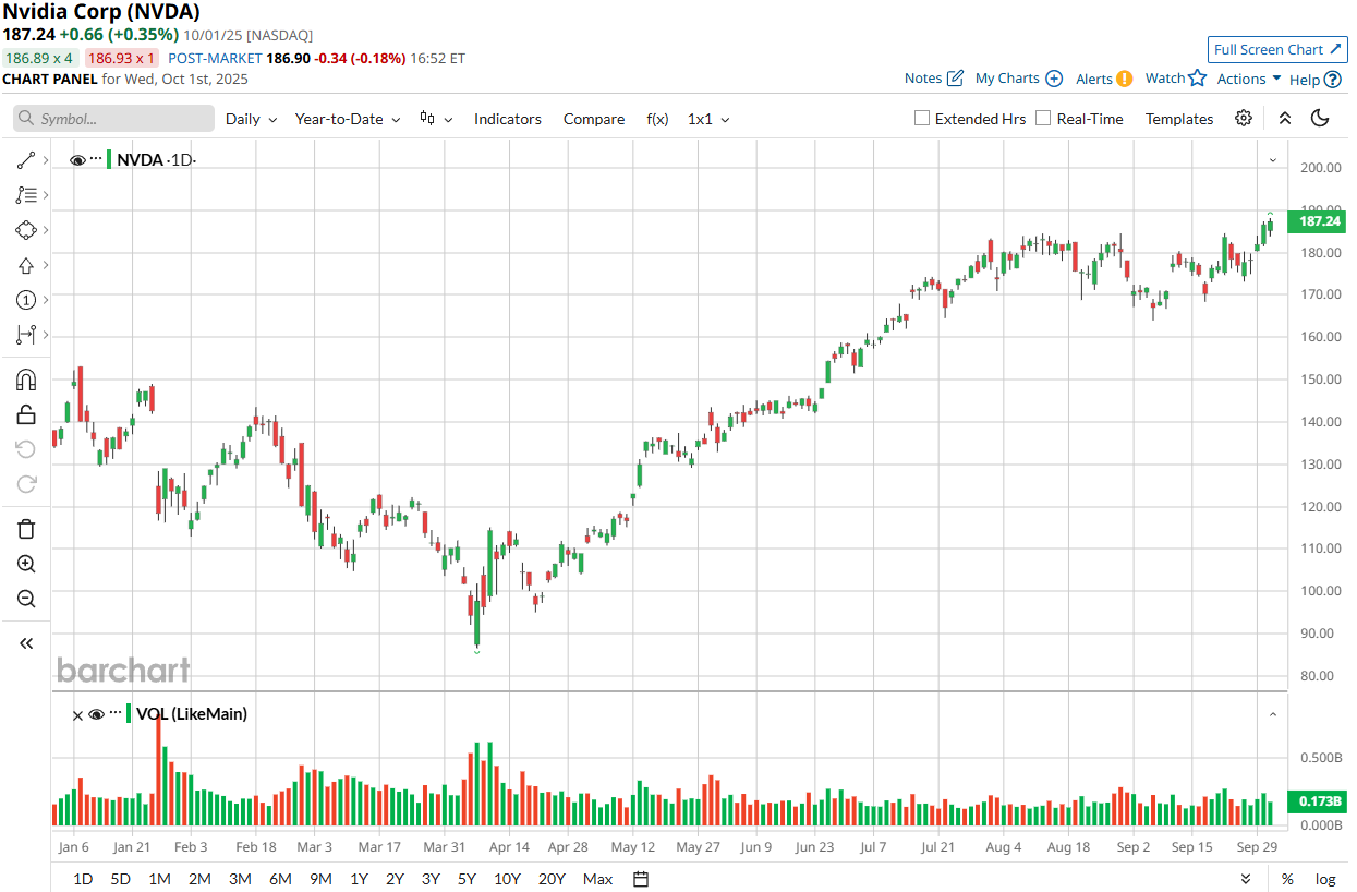 Despite the headwinds in China, Nvidia is expected to maintain strong growth momentum. Analysts project Nvidia’s adjusted EPS will climb 50.58% year-over-year (YoY) to $4.50 in fiscal 2026, while revenue is expected to rise 58.20% from the prior year to $206.45 billion.