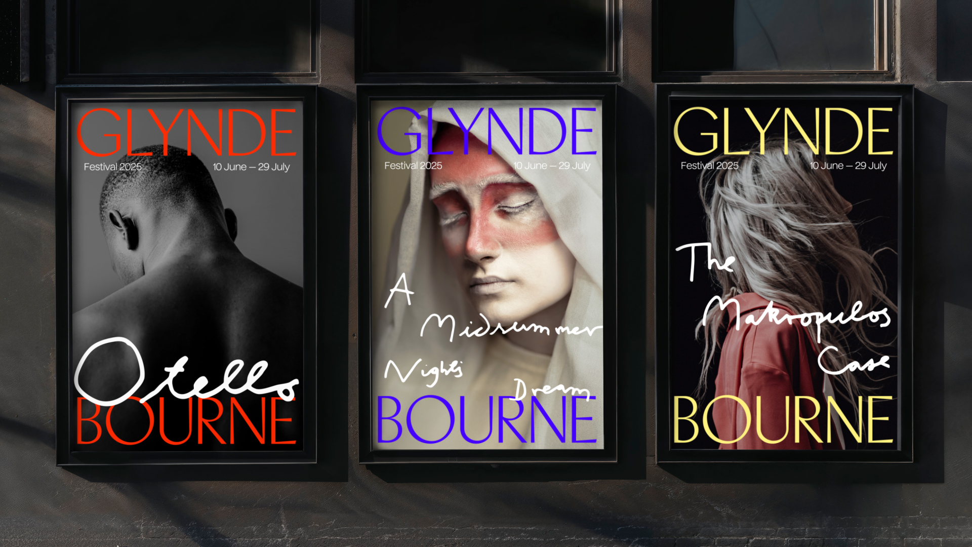 For the Festival Opera titles, a specific handmade type style is used to highlight the authorship of those behind each production. The style is based on the handwriting of those who create Glyndebourne productions.