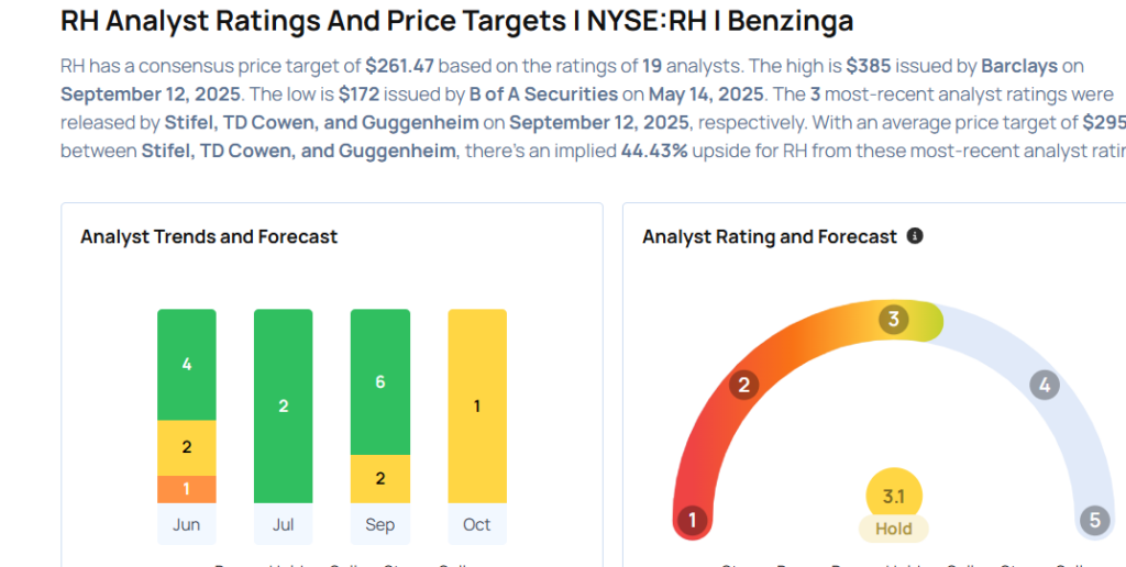 - William Blair analyst Phillip Blee downgraded the rating for RH (NYSE:RH) from Outperform to Market Perform. RH shares closed at $200.80 on Wednesday. See how other analysts view this stock.