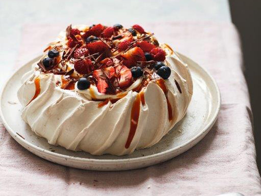 “If you want to, you can make the meringue in advance. Sometimes pavlovas can be tricky, but this one is easy. Simply put this one on the table after dinner and let everyone dig in.”