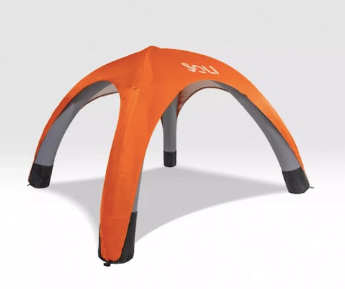 It takes just one person to set up this air canopy. First, unroll the canopy on the ground. Then, connect the air pump and turn it on to inflate in just two minutes — it has a battery life that should be able to inflate it up to five times before needing to be recharged via USB. Eight ground stakes and four tether ropes are included to ensure that it doesn’t topple or blow over, though the unique aerodynamic dome shape is naturally wind resistant and the wide base provides extra stability.