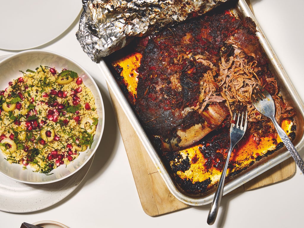 Slow-roasted harissa lamb shoulder