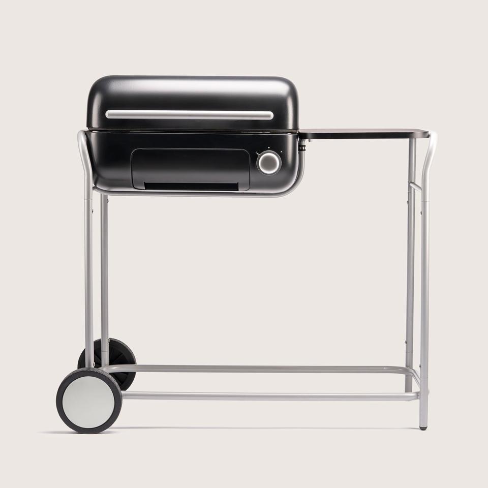 The first thing you’ll notice about the Spark grill is its sleek, understatedly stylish design that’s as functional as it is tasteful—rather refreshing to see in a category that’s typically dominated by rugged-looking, masculine-leaning details and branding. The porcelain enameled steel kettle is double-walled and available in four colors: black, cream, navy and a muted sage green that feels equal parts classic and modern. The whole thing is secured on a super sturdy steel cart that supports the kettle as well as an adjacent side table (the brand also sells an FSC-certified bamboo cutting board that fits snugly in that spot for a convenient prep space).