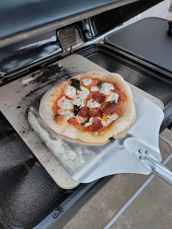 We’ve grilled several meals on the Spark, but pizza-making has decidedly been the most gratifying—and fun. There are a couple essentials that are crucial for a perfect pie, and fortunately the brand offers a Pizza Pack, which includes an aluminum peel and weighty custom ceramic stone that nestles nicely on the grill in place of the grates. (It’s also great to use for roasting veggies without the risk of them slipping through grates into the the abyss of the grill, or even pie and bread).