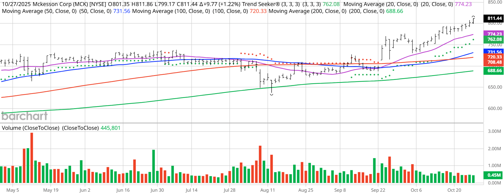 - McKesson (MCK) is trading at new all-time highs and has strong technical momentum.