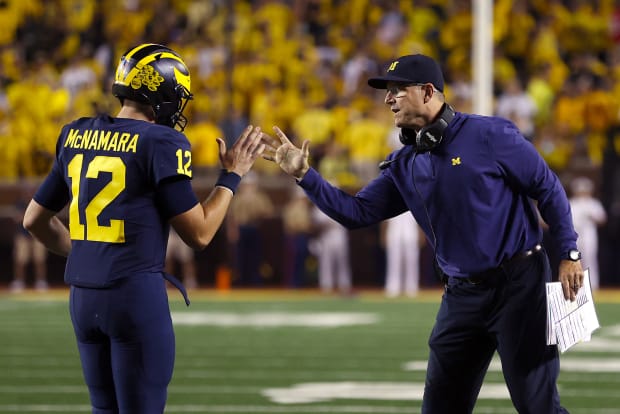 The “grit” of this group, to use Harbaugh’s word, is all the more enjoyable after a 2020 undercut by what the coach saw as a lack of commitment from some members of his team. Four players opted out of the COVID-19-plagued season—some of them stars—six more transferred before the first game had been played, and Harbaugh alluded generally to others who might not have been all in as the season spiraled into a 2–4 mess.