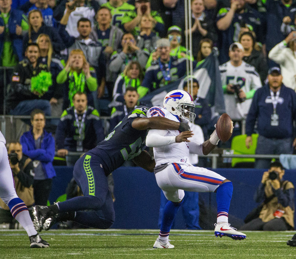 The Seahawks wobbled, big time even, but Cliff Avril sacked Bills quarterback Tyrod Taylor on third down and Taylor's pass fell incomplete on fourth down.