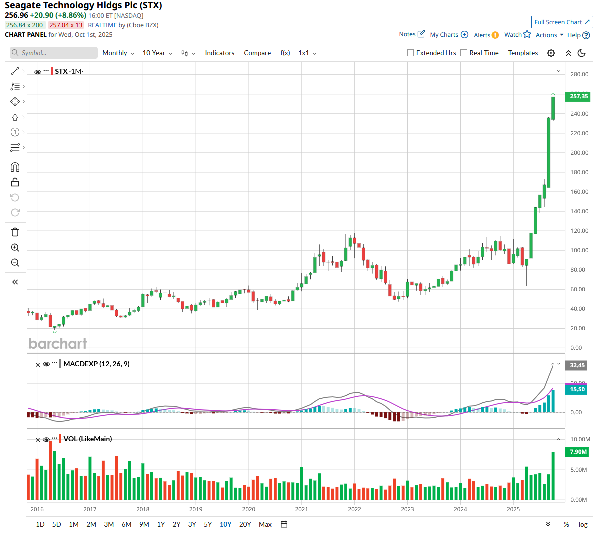 Palantir (PLTR) has dominated headlines with its 143% surge in 2025, but another S&P 500 ($SPX) stock has quietly claimed the title of top performer. Seagate Technology (STX) has rallied an astounding 196% year-to-date (YTD), outpacing even the AI software giant, which is tied to explosive demand for data storage driven by the buildout of artificial intelligence (AI) infrastructure.