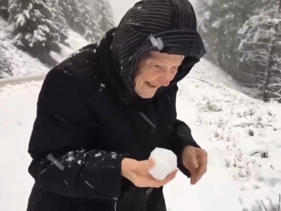 This heartwarming video of a 101-year-old woman playing in the snow is making everyone's day.
