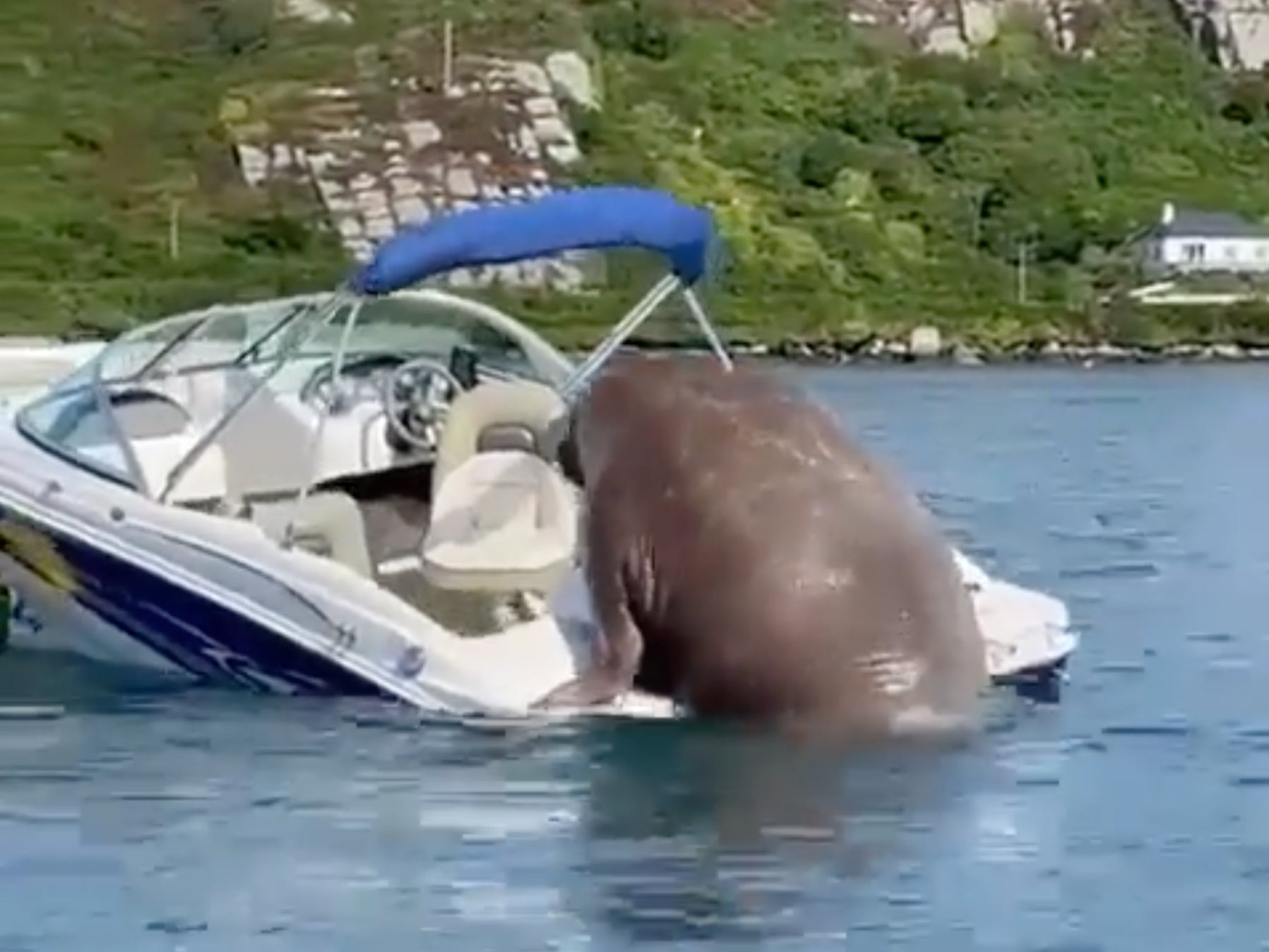 While it’s unclear where and who captured the incident, social media users claim the mammal to be Wally - the infamous boat-loving walrus – known for unintentionally damaging boats across the Irish coast.