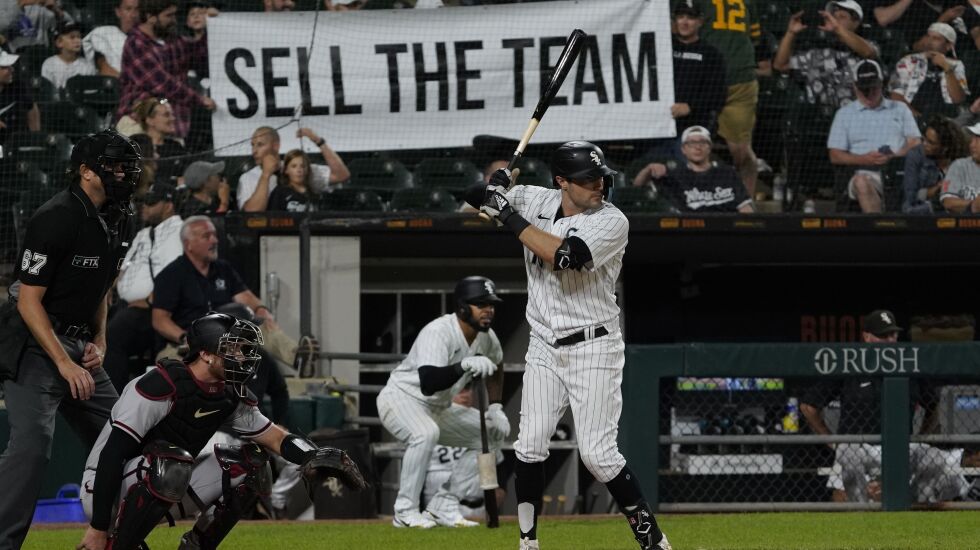 It’s just another delightful night at Guaranteed Rate, where $10.75 will get you a 16-ounce beer and an extra quarter will get you your very own “Sell the team” sign.