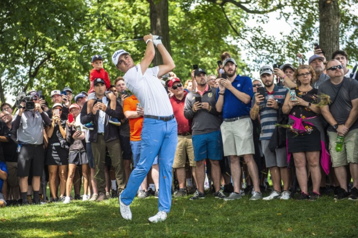 Thomas started the day with a six-shot advantage but when he bogeyed the 10th hole, after almost hitting his second out of bounds, the lead over Cantlay was down to two.