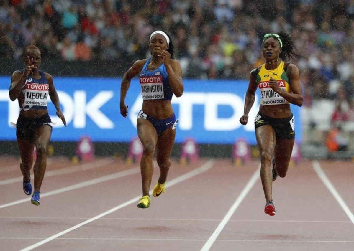 LONDON (Reuters) - Olympic champion Elaine Thompson ignored a cloudburst to easily win her opening heat in the women's 100 meters at the World Championships on Saturday.