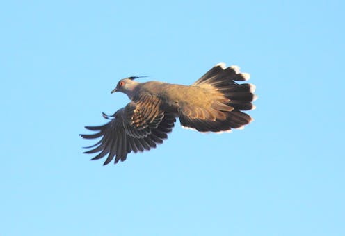 Crested pigeons aren’t the only birds that use their feathers to communicate. We know of several other pigeon species that produce conspicuous sounds with their wings that are just waiting to be investigated, such as the Spinifex pigeon.