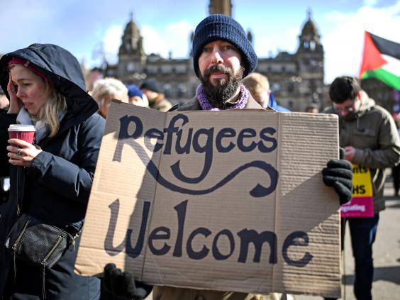 Demonstrators held up bold messages calling for "freedom" and "open borders", while others held photographs of young children injured due to attacks in war-torn countries.