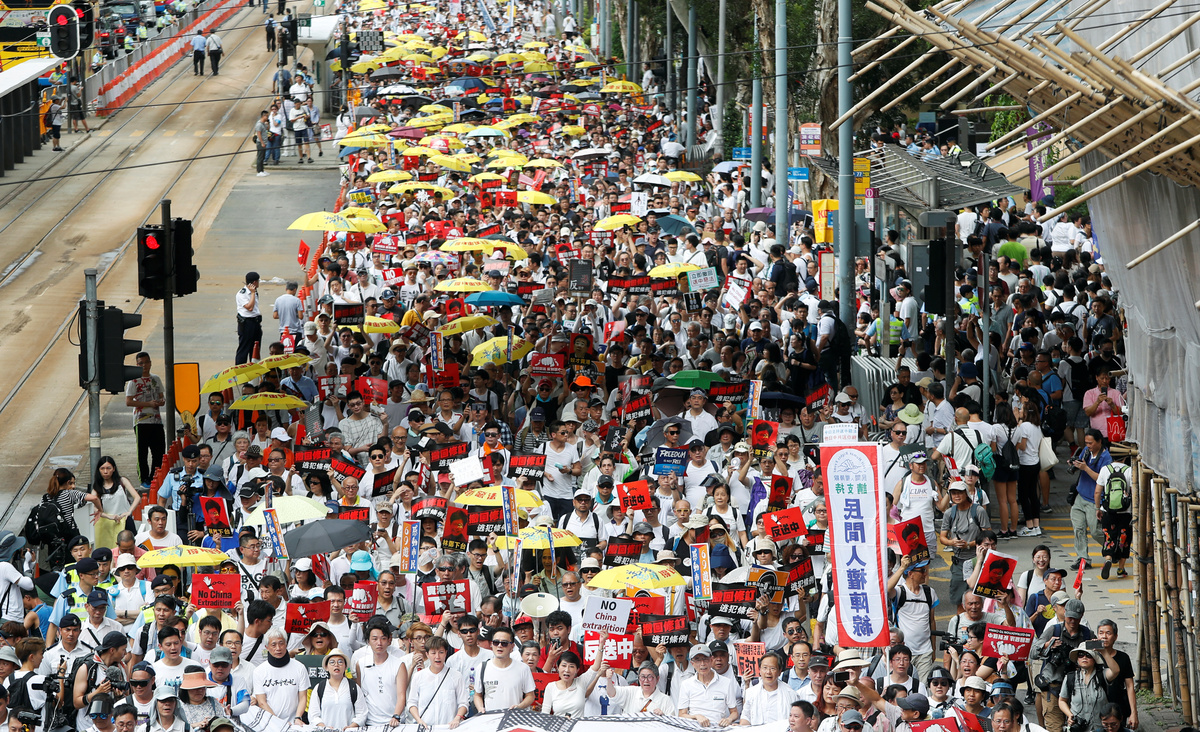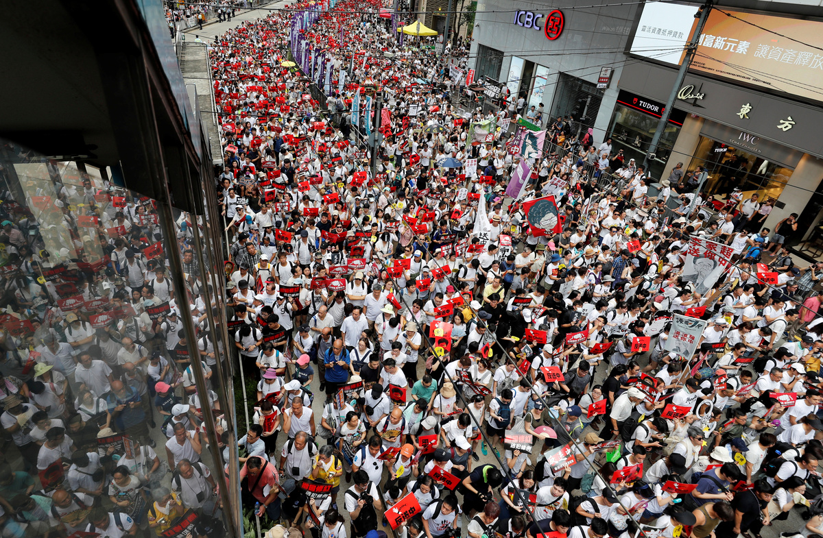 HONG KONG (Reuters) - Several hundred thousand people jammed Hong Kong's streets on Sunday in a last bid to thwart a proposed extradition law that would allow suspects to be sent to China to face trial, with police bracing for the biggest march in the city in 15 years.