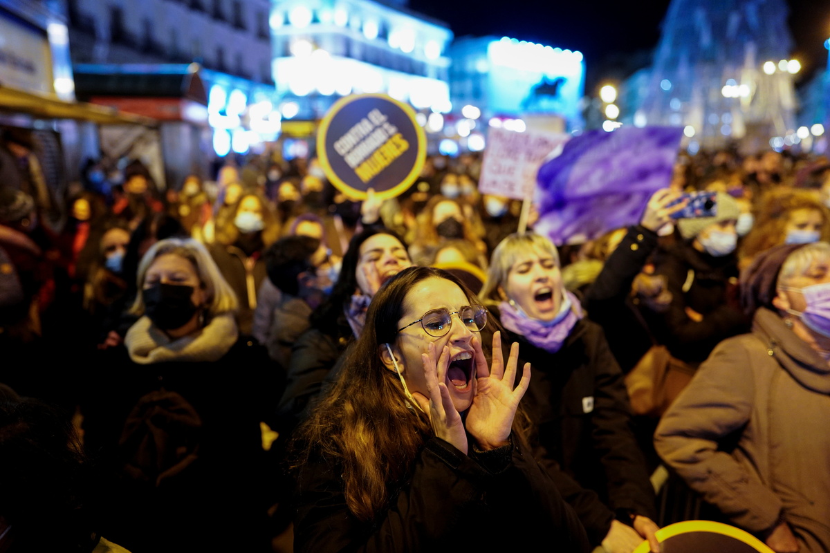 "(I am tired) of the wage gap, of violence against women, everything, all the difference between men and women, all the problems that exist nowadays, can be felt in this society where we do not have the same rights," said maths student Carolina Sanchez, 21, at the rally in Madrid.