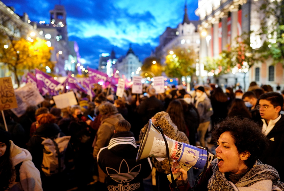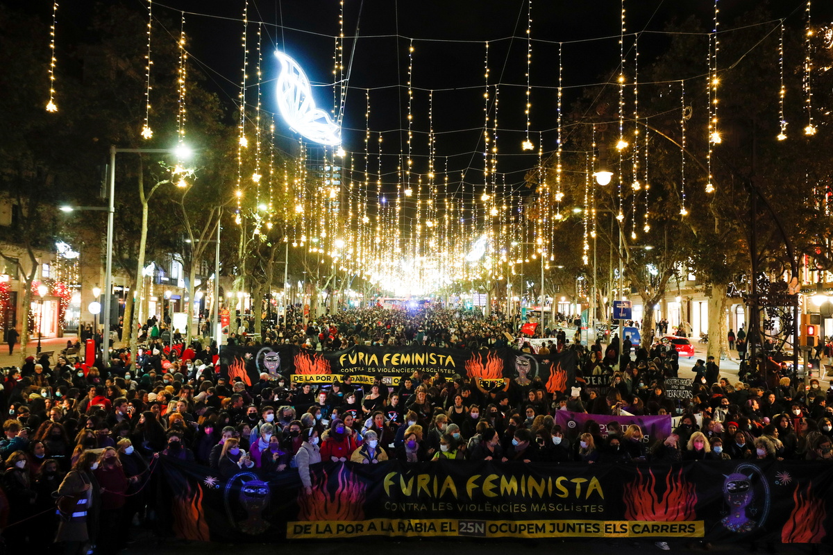 Chanting for gender equality and bearing purple banners, thousands of people took to the streets across Spain on Thursday evening in marches to mark the International Day for the Elimination of Violence against Women.