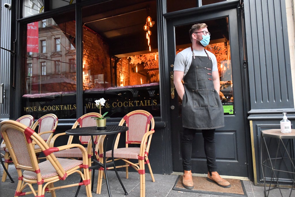 In Scottish pubs, a one-metre distance must be maintained between tables, groups of people meeting will be limited to three households, and alcohol must be served at the table.
