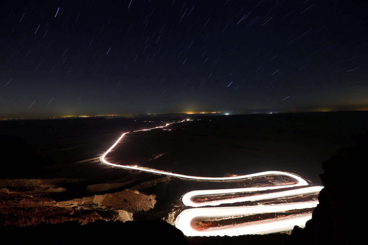 Locals had the rare task of directing traffic on a moonless Monday night in Mitzpe Ramon in the heart of the Negev Desert, a spot surrounded by terrain described as similar to a lunar or Martian landscape.
