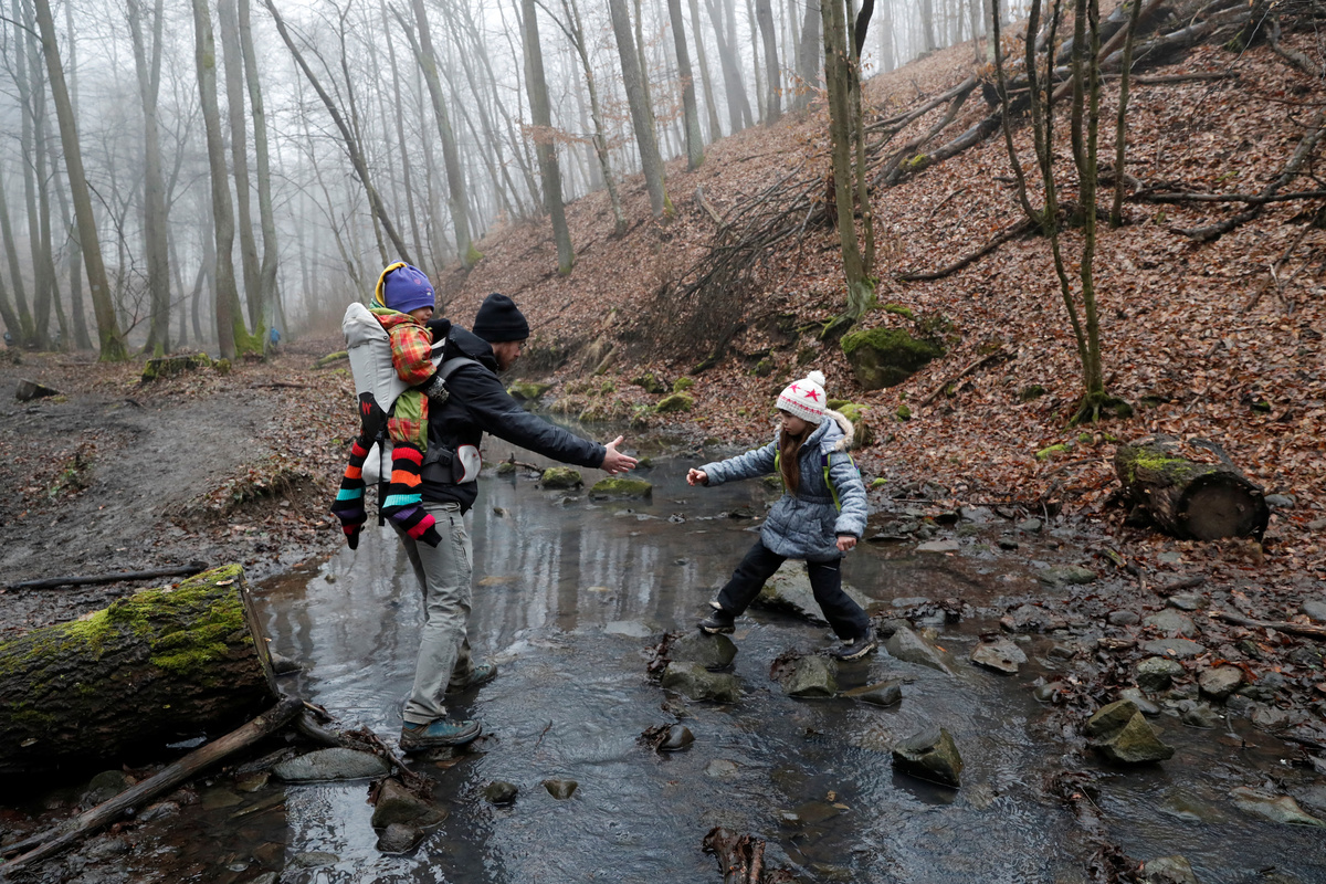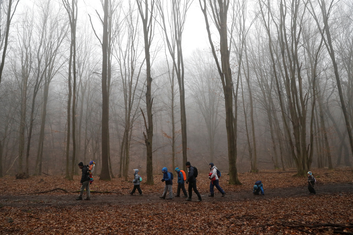 Desperate to escape the pandemic lockdown, thousands of Hungarians have flocked to the country's famous National Blue Trail to savour the calm, open air of the woods.