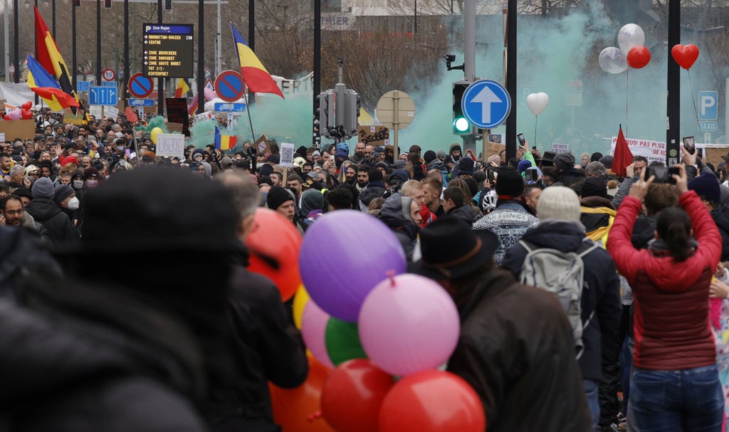 Thousands of peaceful protesters demonstrated in Brussels on Sunday for a third time against reinforced COVID-19 restrictions imposed by the Belgian government to counter a spike in infections as the omicron variant sweeps across Europe