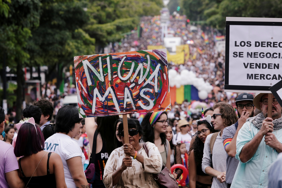 People take part in the annual Gay Pride parade along a Central Avenue, in San Jose, Costa Rica June 23, 2019. REUTERS/Juan Carlos Ulate