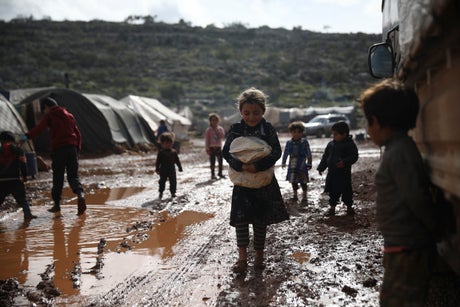 Another Idlib resident, Ali Ibrahim and his family of five, had to spend a night in the rain after their tent “collapsed on our heads.” They set it up again and now they are staying inside during the latest storm.