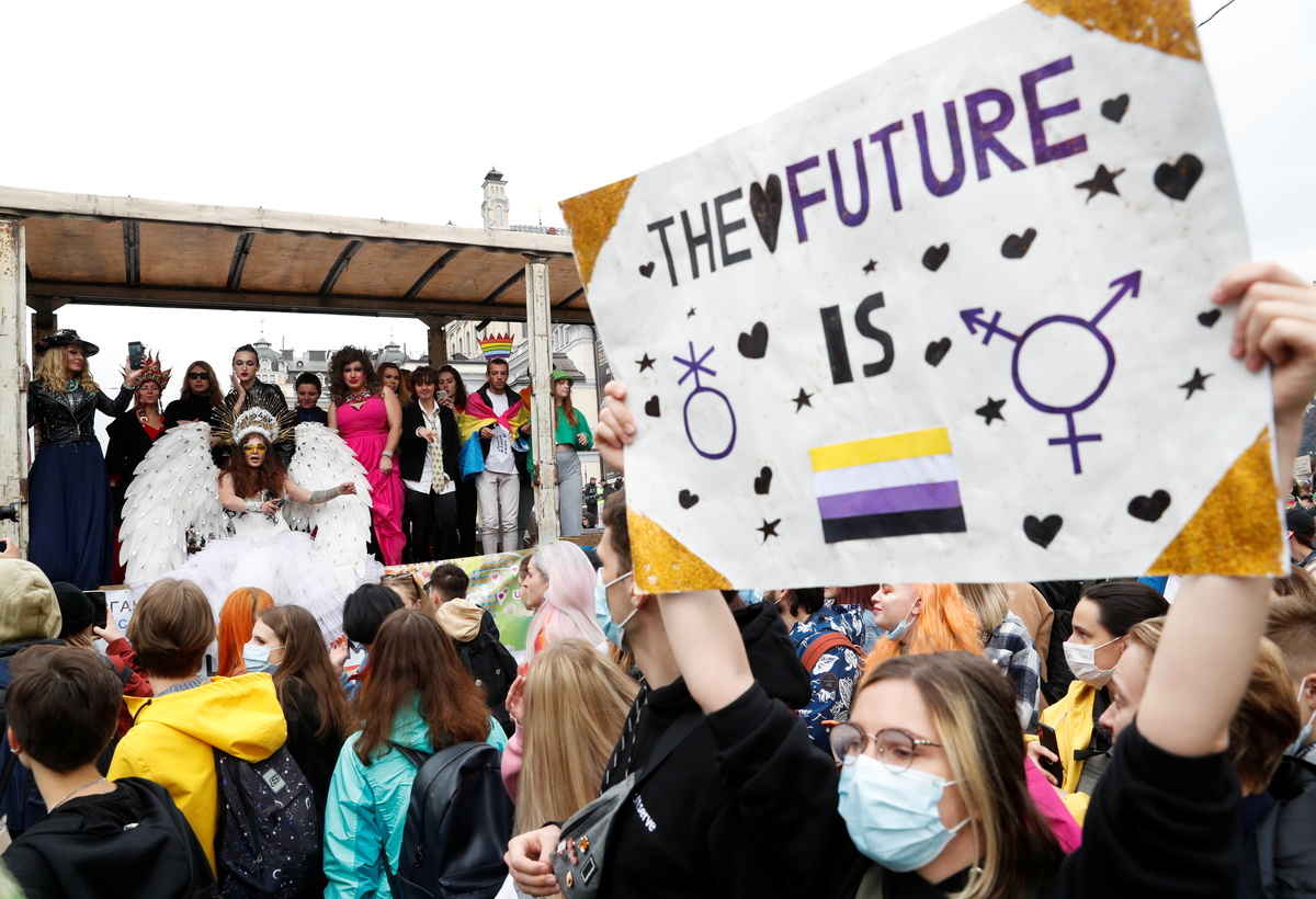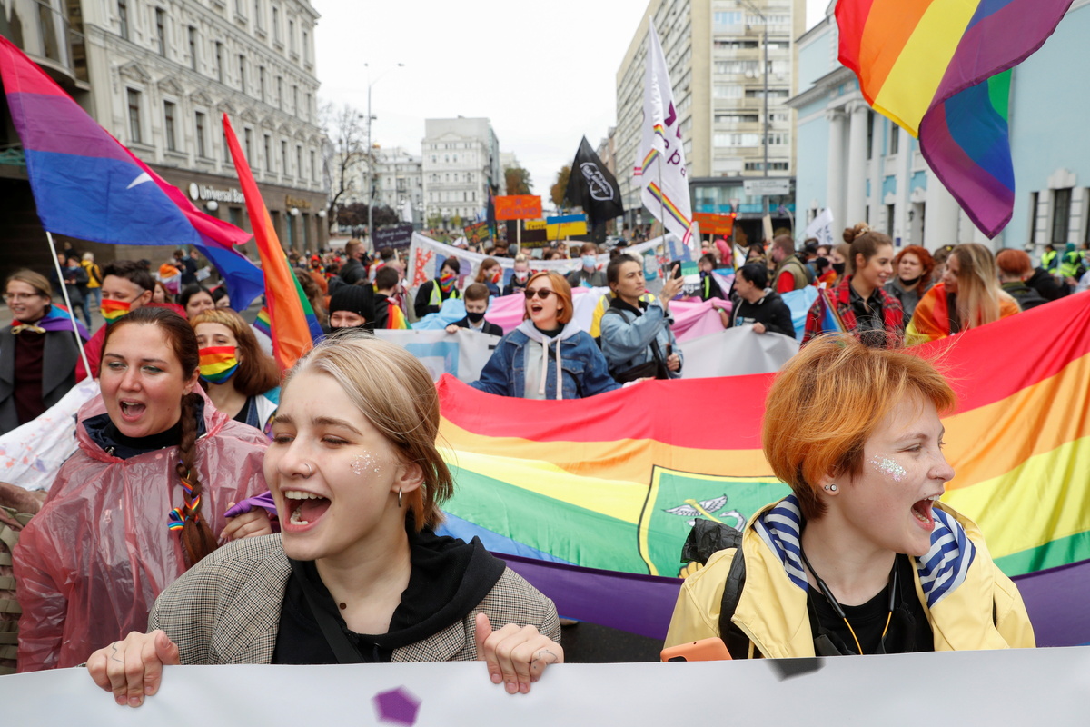 Ukraine ombudswoman Lyudmyla Denisova wrote on Facebook on Sunday that the constitution recognises all people "equal in their rights from birth, regardless of any characteristics, including sexual orientation and gender identity".