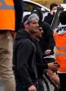 Investigators have been told a man was walking with the group besides a white utility truck before crouching down on the road, and launching what appeared to be a firework towards police officers.
