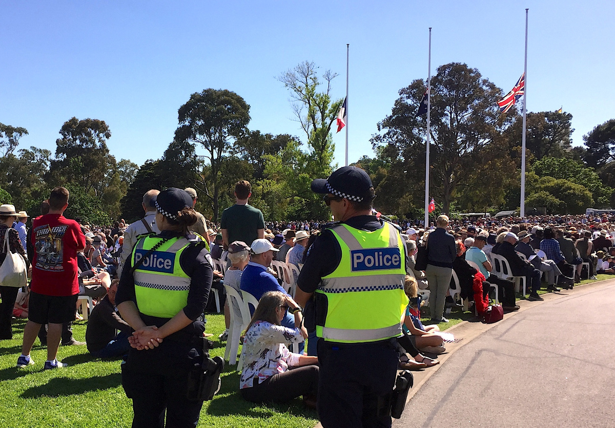 At the shrine, across the river from the scene of the Bourke Street attack, a substantial but unobtrusive police presence guarded a crowd of about 4,000.
