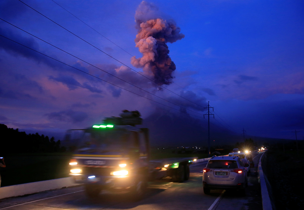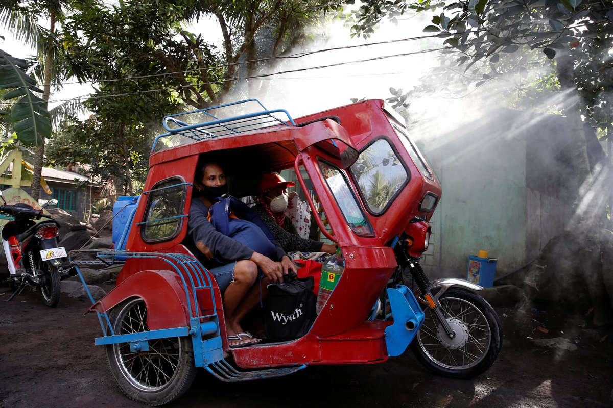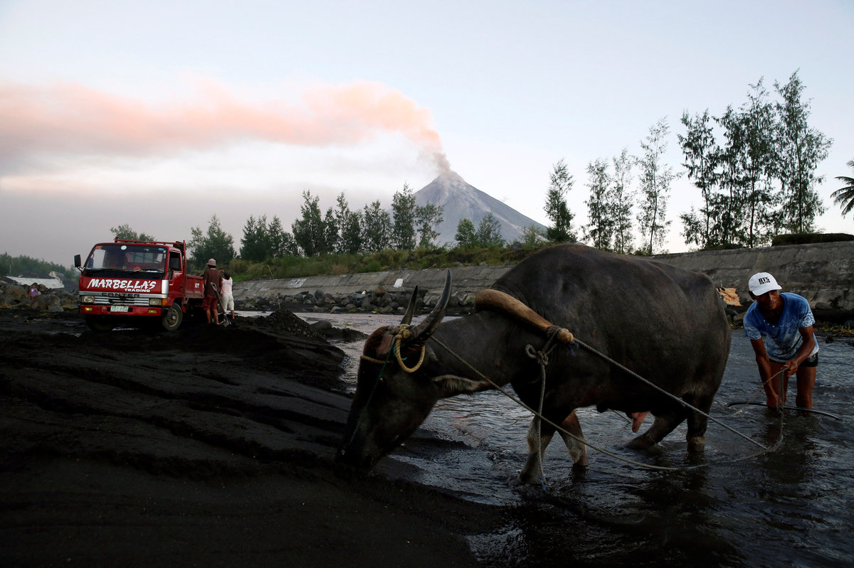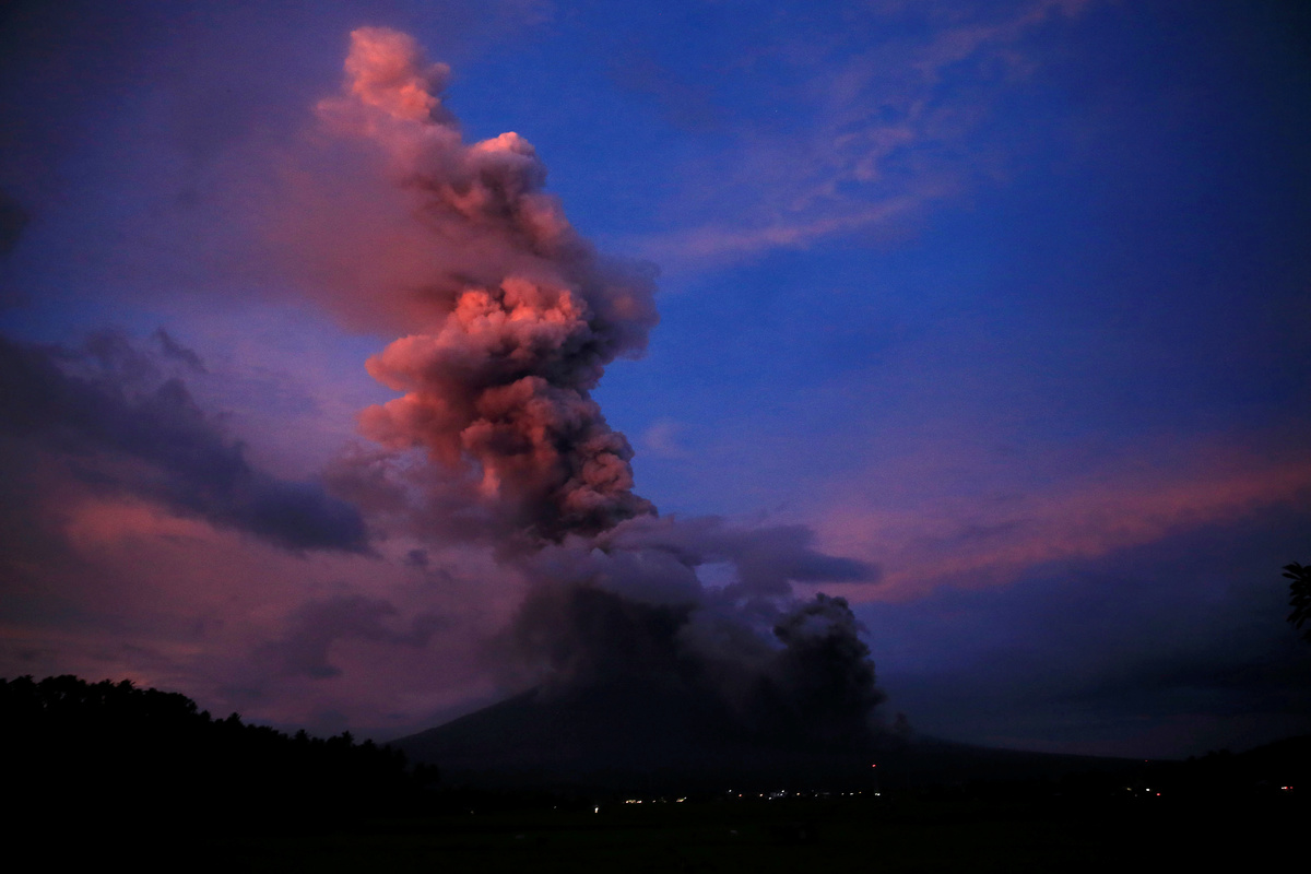 Residents stay at a temporary evacuation center after Mayon Volcano erupted at Camalig, Albay province, south of Manila, Philippines January 24, 2018. REUTERS/Romeo RanocoResidents staying at a temporary evacuation center wait for relief goods after Mayon Volcano erupted at Camalig, Albay province, south of Manila, Philippines January 24, 2018. REUTERS/Romeo RanocoA resident and his water buffalo walk at a river, while the Mayon volcano spews ash in Guniobatan, Albay Province, Philippines January 23, 2018. REUTERS/Stringer Soldiers and residents board a military truck, as they prepare to depart to an evacuation center, after the Mayon volcano erupted in Guniobatan, Albay Province, Philippines January 23, 2018. REUTERS/Stringer A soldier helps residents as they prepare to depart to an evacuation centre after the Mayon volcano erupted in Guniobatan, Albay Province, Philippines January 23, 2018. REUTERS/Stringer Residents wear face masks as they board a motorised tricycle towards an evacuation center, as the Mayon volcano spews ash in Guniobatan, Albay Province, Philippines January 23, 2018. REUTERS/Stringer A view of the Mayon Volcano after a new eruption in Legazpi city, Albay province, south of Manila, Philippines January 23, 2018. REUTERS/Rhadyz Barcia