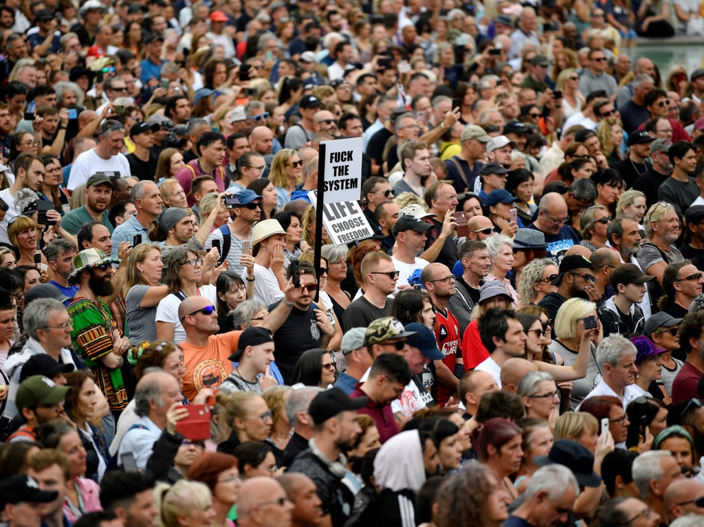 Thousands of anti-lockdown and anti-vaccine protesters gathered in central London for a "Worldwide rally for freedom" - five days after restrictions were lifted in England.